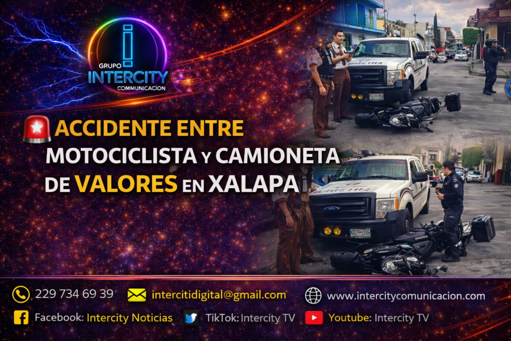 Xalapa, Veracruz.– La tarde de este jueves 26 de marzo de 2026 se registró un accidente vial entre un motociclista y una camioneta de valores de la empresa COMETRA, en la colonia Tamborrel.